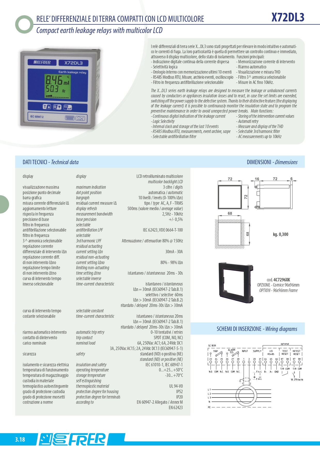 Kaçak Akım Rölesi / A,AC ve F Tipi / LCD Ekran 80÷260Vac/dc/30mA-30A/72x72/Pano Tipi