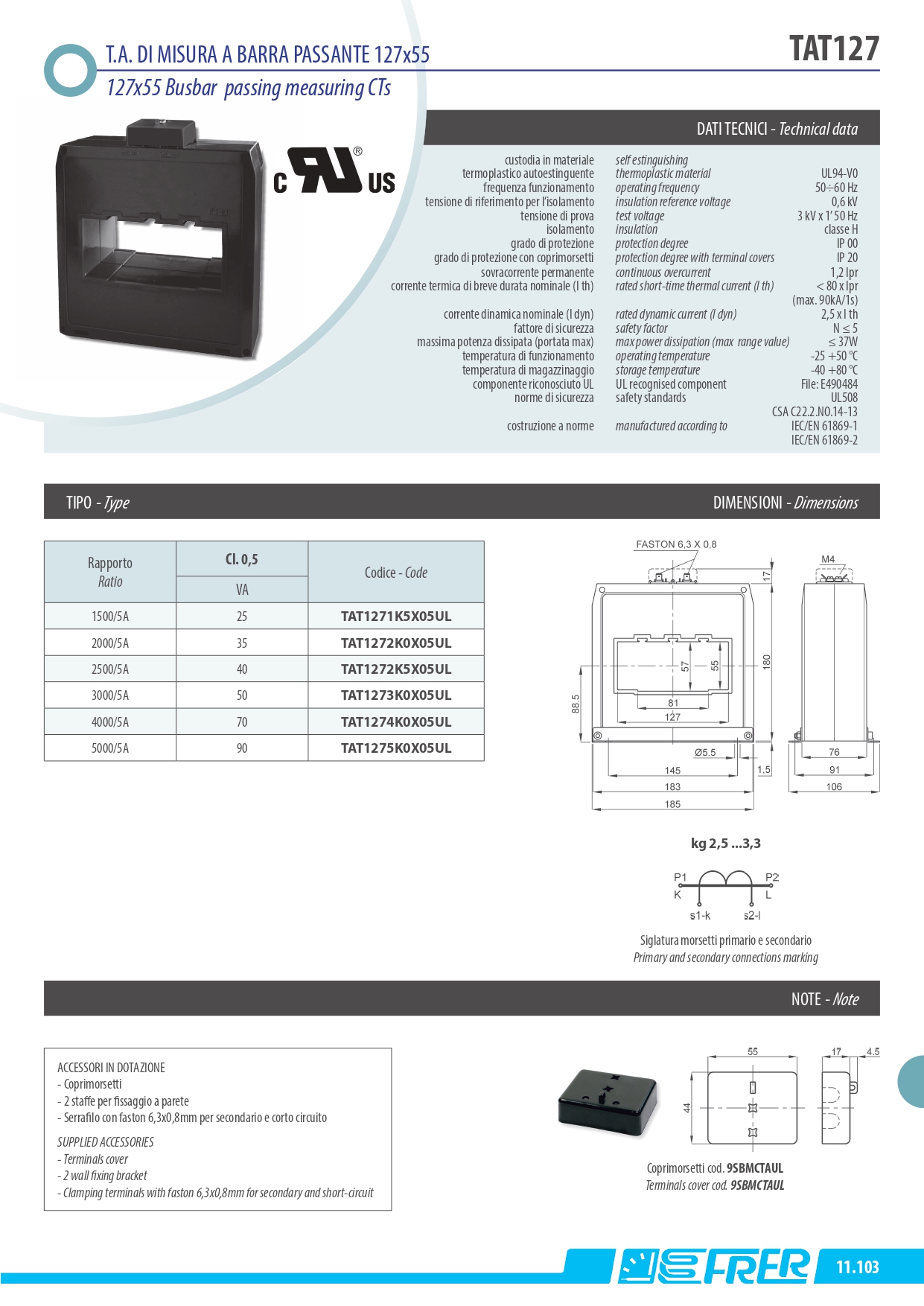 TAT127 Serisi 1500/5A Akım Trafosu (UL) 127x55 Cl. 0,5 (25VA)